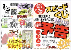 🛍️ 大人気商品が勢ぞろい! 🍓 いちご・七草など季節のおすすめも🍀 🎁 1000円以上お買い上げでスピードくじ開催!