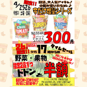 さらに👇 17時〜タイムセール⚡ 野菜・果物が…半額⁉️